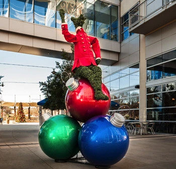 - Should be stored indoors after use during holiday season. Our giant fiberglass ornaments are shipped in heavy-duty boxes that are perfect for storing your ornaments when not in use!