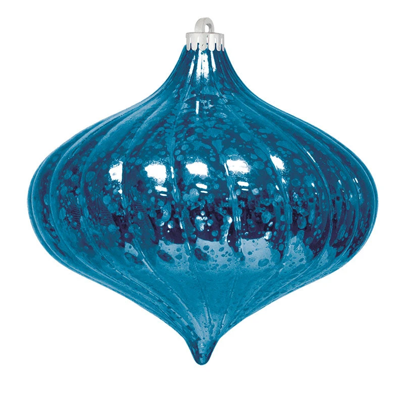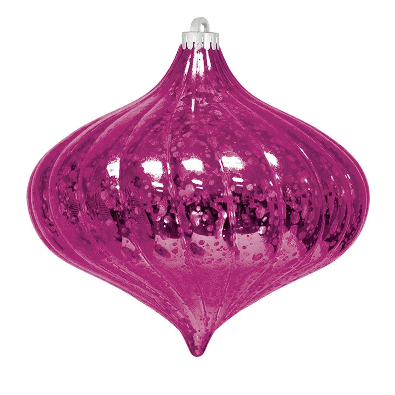 Choose between 7 colors of our Mercury Top Swirl Ornaments. These mercury finished plastic ornaments are great for exterior use and sold in sets of 4.