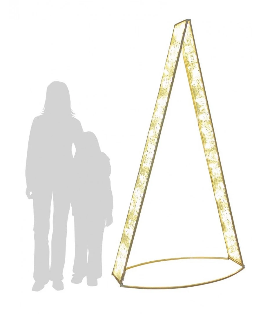 The modern yet simplistic tree is a fun addition to any décor program or holiday display. The tree is constructed with a gold frame and filled in with bright twinkling warm white LED mini lights woven through a clear silicone netting.