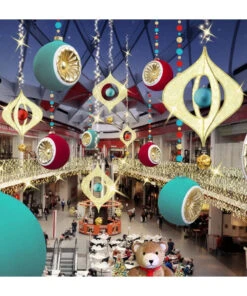Festive 8′ 2″ LED Pole Mount with a vibrant red and green rope light Holly leaf with berries and cascading pure white LED mini lights. Â