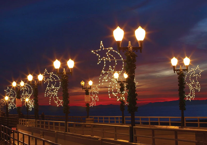 A festive and fun holiday addition – these LED lit falling stars pole mounts are built on a durable aluminum framing with 110 LED bulbs. Â