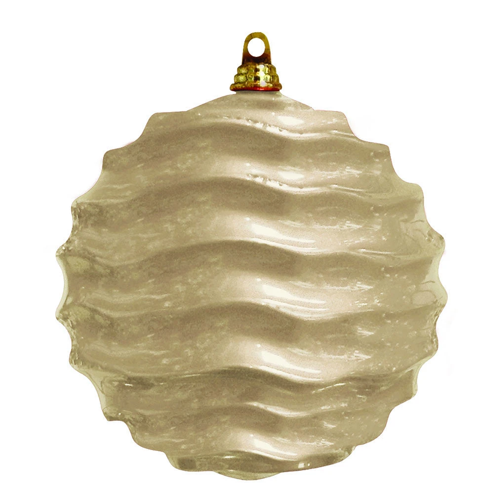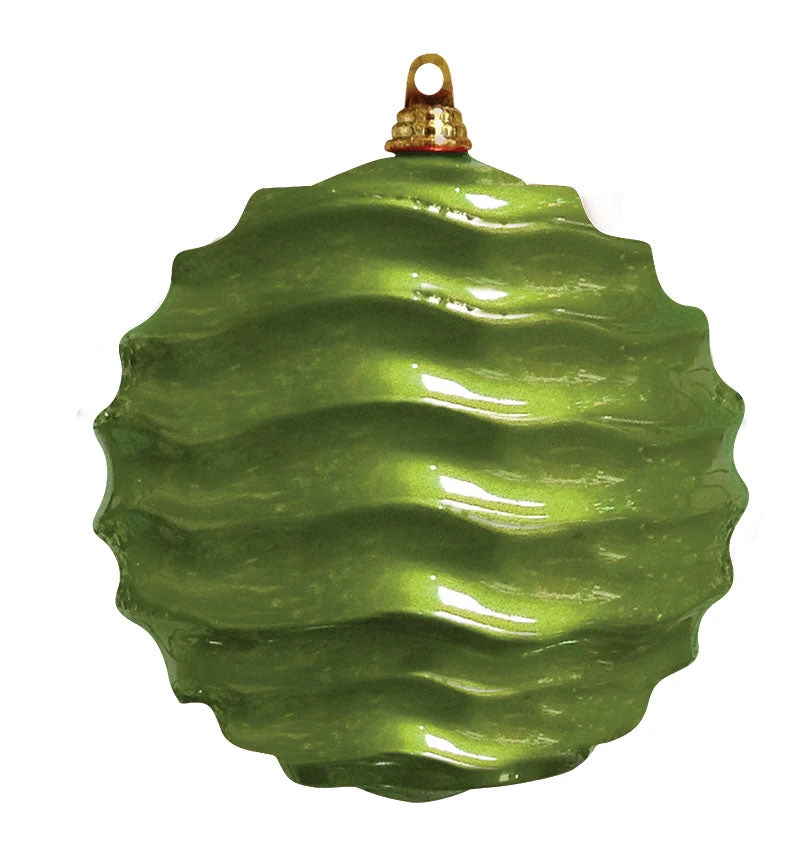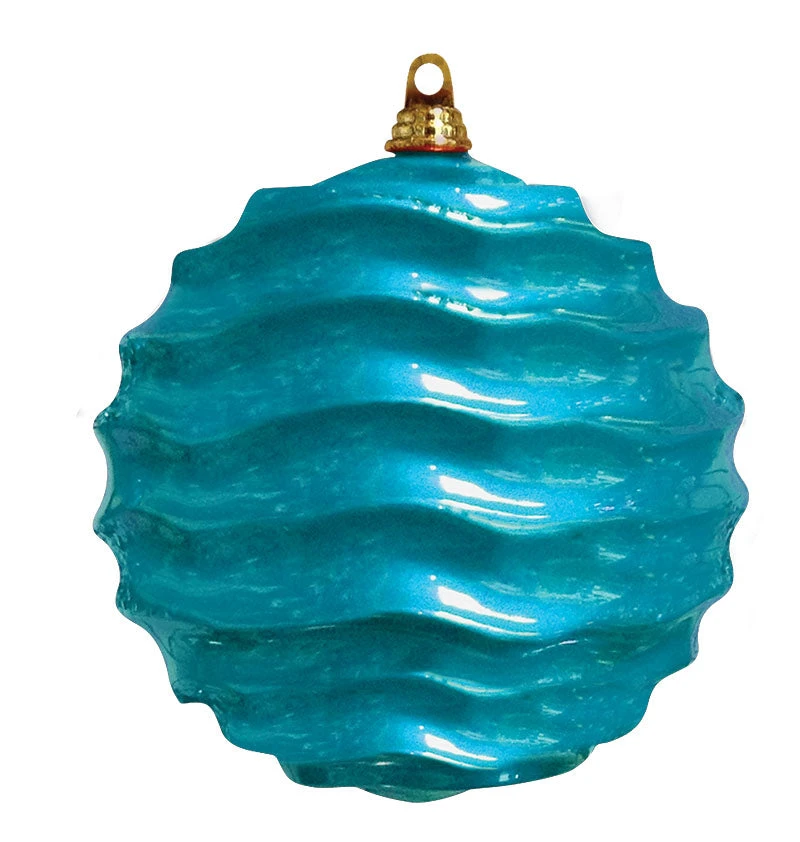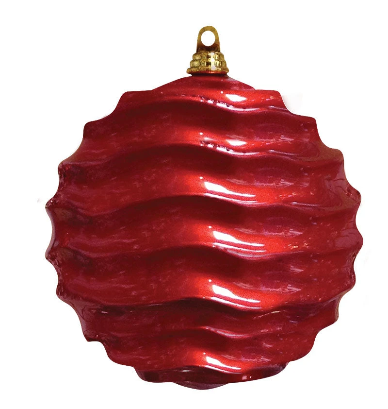 These beautifully sculpted indoor or outdoor wave Christmas ornaments have a candy apple finish and are UV-treated for superior sun protection. Â