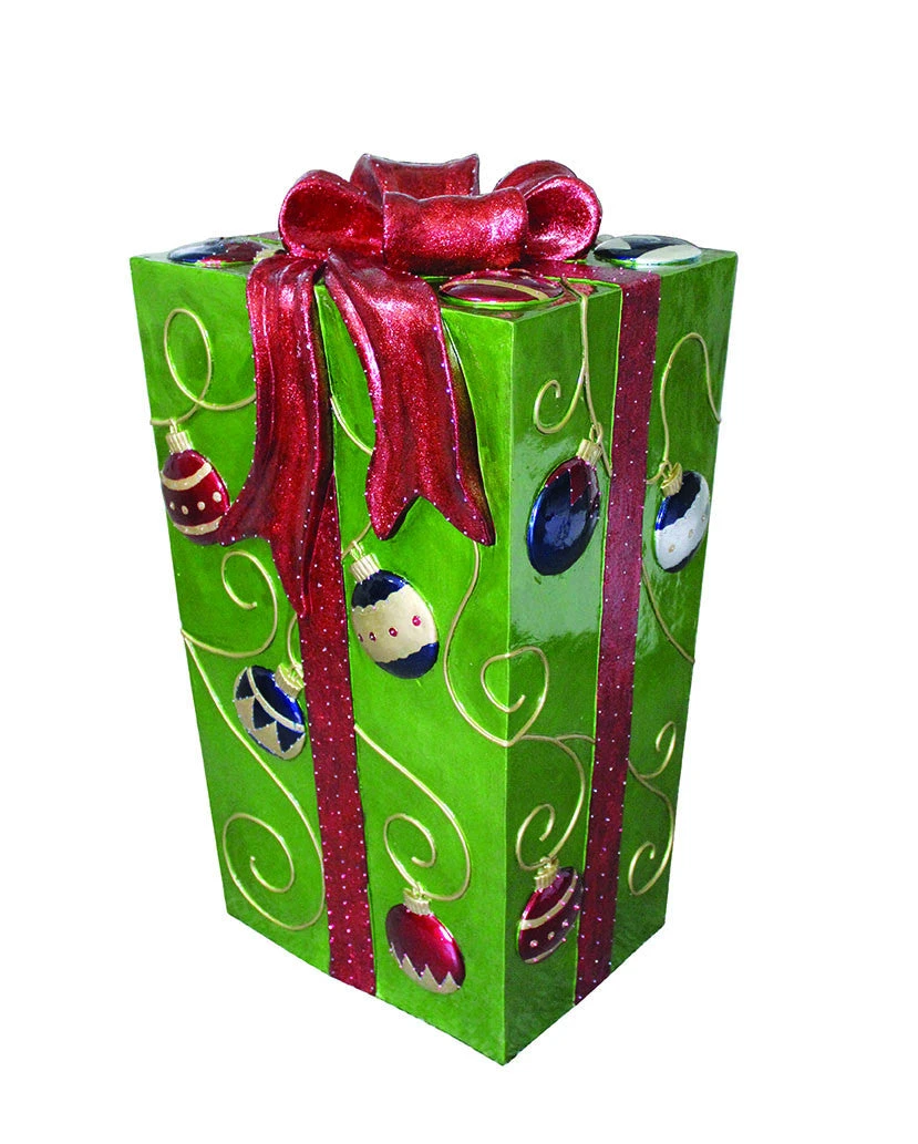 Add a decorative touch to your holidays with these fiberglass, ornament themed gift boxes with LED accent lighting.