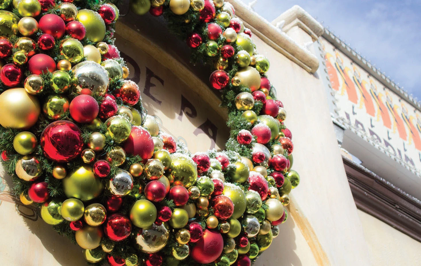 One of our most popular designer wreaths! Our deluxe, pre-decorated wreath comes heavily ornamented with shatterproof and uv protected gold and silver baubles and beautifully set aglow with warm white LED mini lights. Our deluxe wreaths are built for interior or exterior commercial holiday decor.