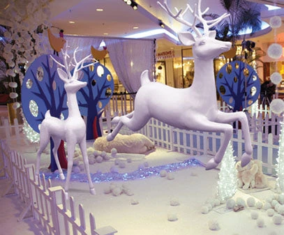 This graceful white Reindeer is equipped with built-in eye hooks and takes flight by suspending with our provided (1/8″) galvanized wire rope.