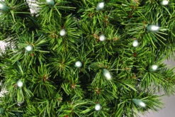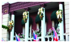 Garland rod is 8′ in length with (2) 5″ wooden finial ends for a total display length of 8′ 10″. Hanging d-rings are approximately 11″ from each finial tip end.