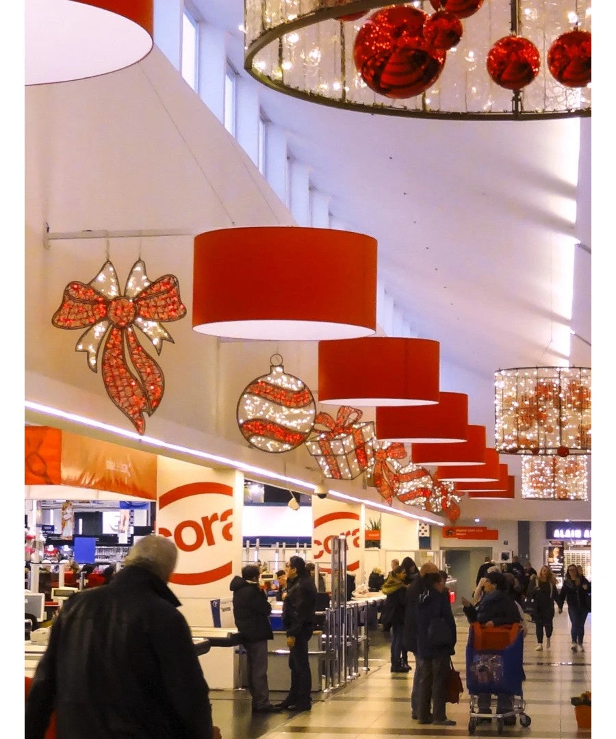 Finish it off with a bow! The giant 2D Aberdeen Bow is an amazing way to add that extra dazzle to any location. It is constructed with twinkling warm white LED mini lights woven through clear and red silicone netting.