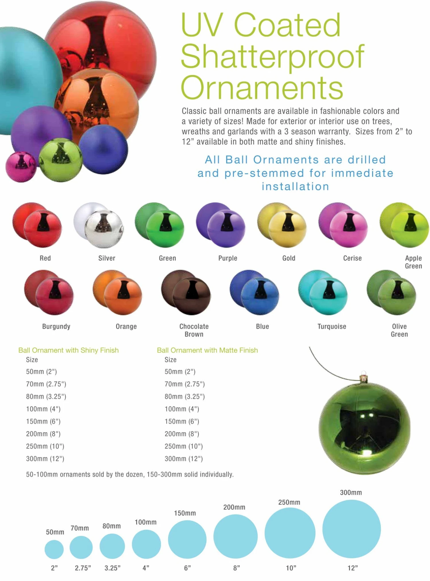 When purchasing one of Commercial Christmas Supply’s Giant Christmas Trees with our Traditional Decor Package, you will work directly with one of our design team members to choose your color theme, desired ornament finishes and sizes. Total ornament count will depend on tree size, finishes and ornament sizes chosen.Â