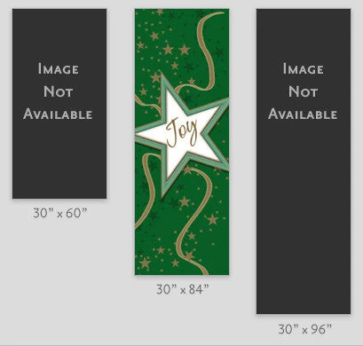 Joy is in the air! A full color digital print on durable 18 oz. reinforced vinyl. Two-sided; same art both sides. Produced on demand in the following sizes as a stock item:Â