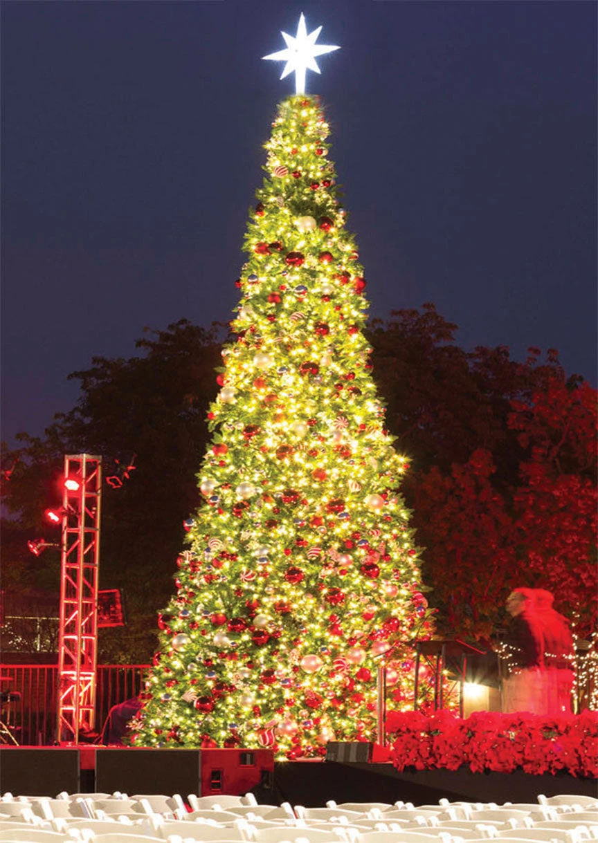 Our Olympia Pine Tower Tree features lushly layered, UV treated branches of dark green, heavy and resilient needles. This tree is easy to assemble with color coding and identical branch sizes throughout the tree. A gauge steel frame ensure durability and stability with easy height adjustment by adding or removing frame rings. This commercial tree is also weatherproofed to withstand even the toughest outdoor environments. Â