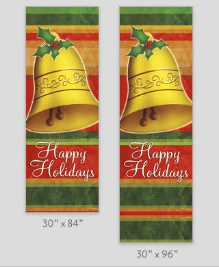 Ring in the Holidays! A full-color digital print on 18 oz. reinforced vinyl. Double-sides; same art both sides. Produced on demand in the following sizes as a stock item:Â